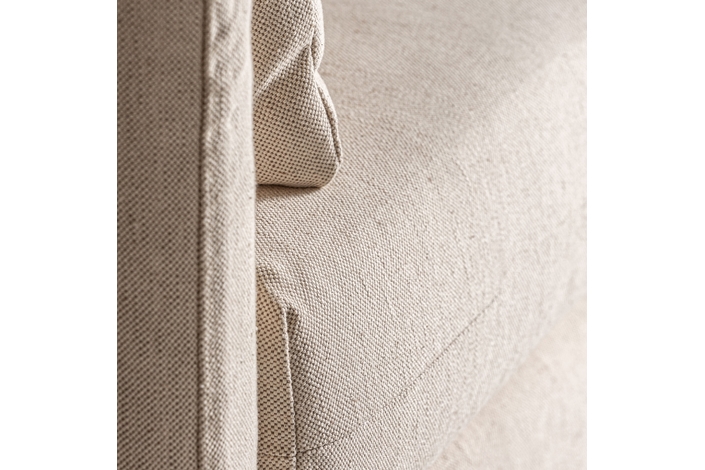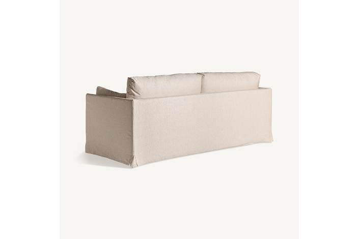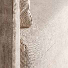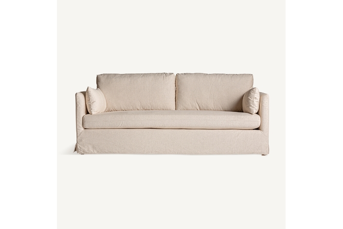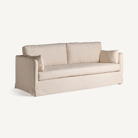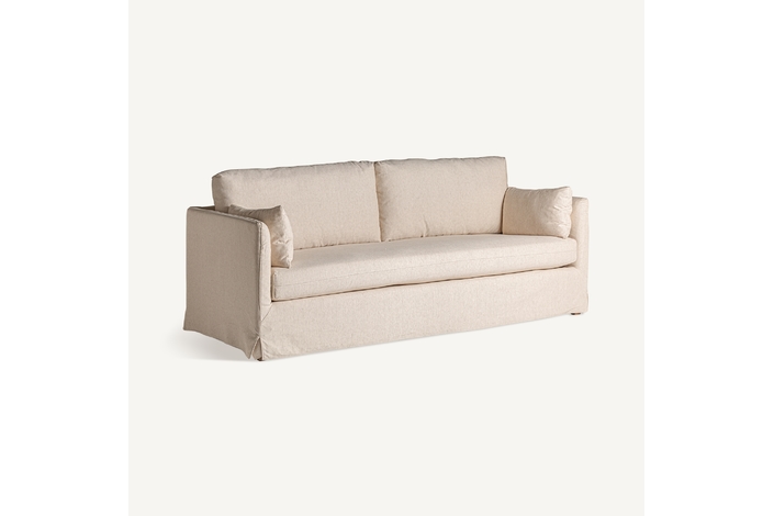 Sofá arbois de estilo colonial, fabricado en madera de fresno en color blanco roto, combinado con poliéster. Producto desenfundable.