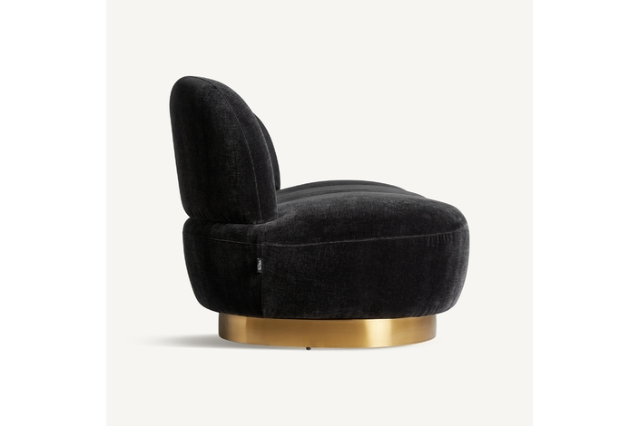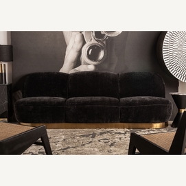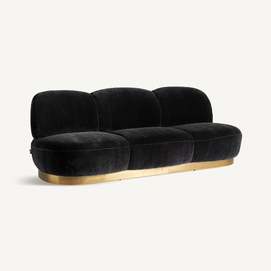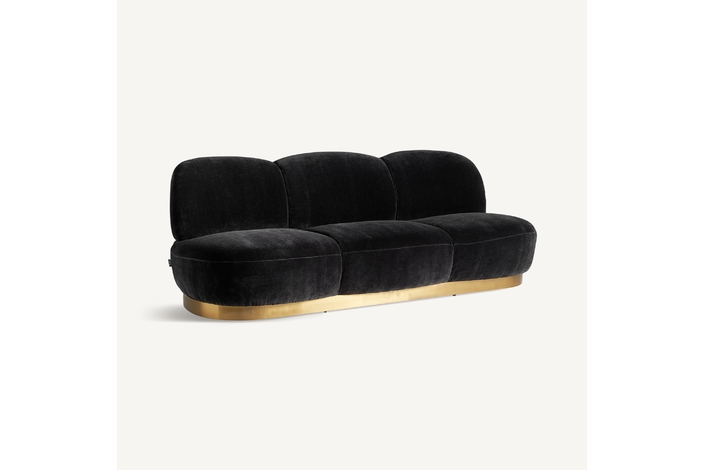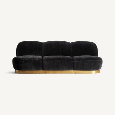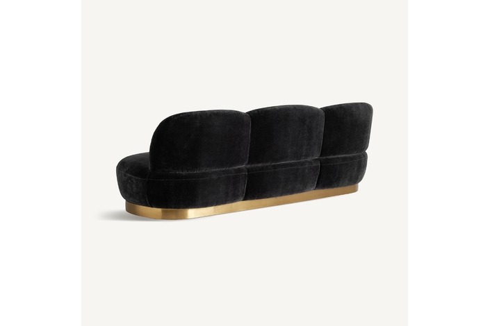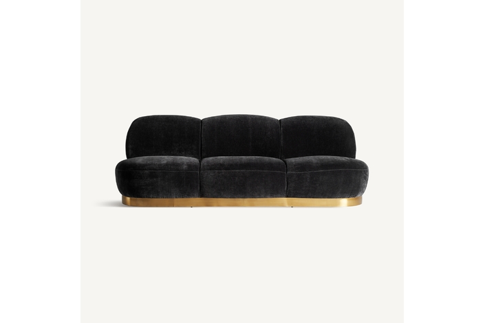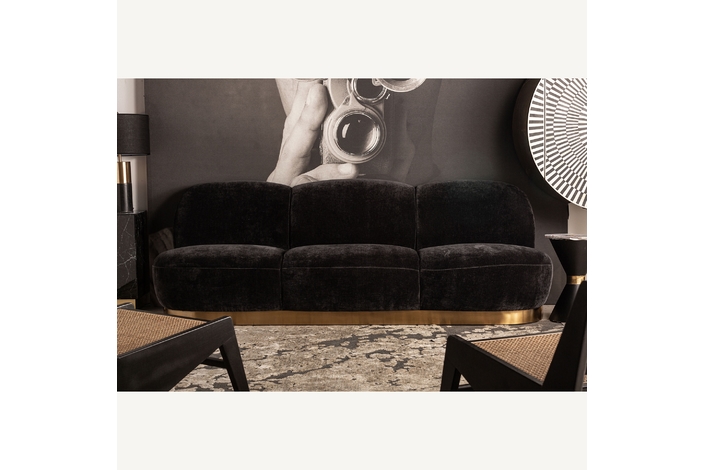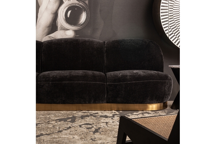 Exclusivo sofá de estilo art déco que ofrece versatilidad al espacio sin perder la esencia y el estilo VICAL notorio en el diseño y fabricación de la pieza. Es un sofá elaborado en terciopelo de un elegante color negro combinado con el acero color oro como sustento. El sofá Balsot se ha convertido en una de las piezas más características de la temporada.
