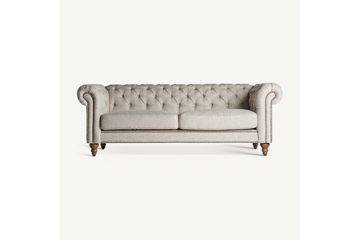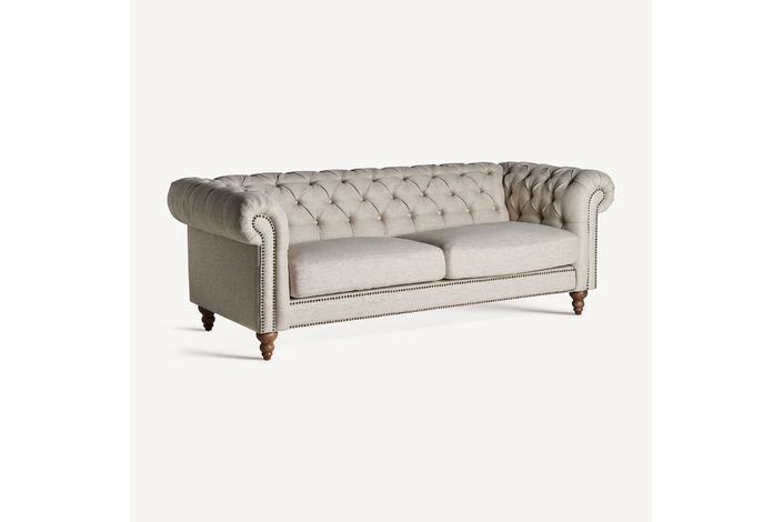 Reinventa tu espacio con la elegancia atemporal del Sofá Chesterfield Blamont de VICAL. Este sofá, realizado en terciopelo gris y apoyado sobre una estructura de madera de abeto, ofrece un refugio de comodidad con un diseño clásico. Sus dimensiones de 215x85x76cm lo hacen una pieza central magnífica en cualquier sala de estar, mezclando la tradición del chesterfield con el lujo contemporáneo. La textura rica y acogedora del terciopelo complementa su robustez, prometiendo durabilidad y un atractivo visual duradero. Ideal para quienes aprecian los diseños clásicos con un toque moderno, el Sofá Blamont es una declaración de sofisticación y confort.