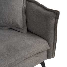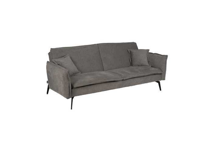 Material estructura: Madera de eucalipto. Material patas: Hierro. Tejido: Lino. Altura del asiento:43cm. Altura patas:20cm. Altura del respaldo:54cm. Profundidad del asiento:57cm. Medidas de la cama:182x113cm Relleno: Espuma Densidad:24 kgs/m3. Peso máximo soportado:300kgs. Las patas requieren montaje. Cumple la normativa europea UNE-EN 12520-2015. Incluye dos cojines del mismo color que el sofá.( sin cremallera)