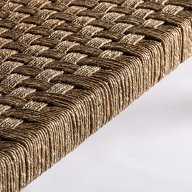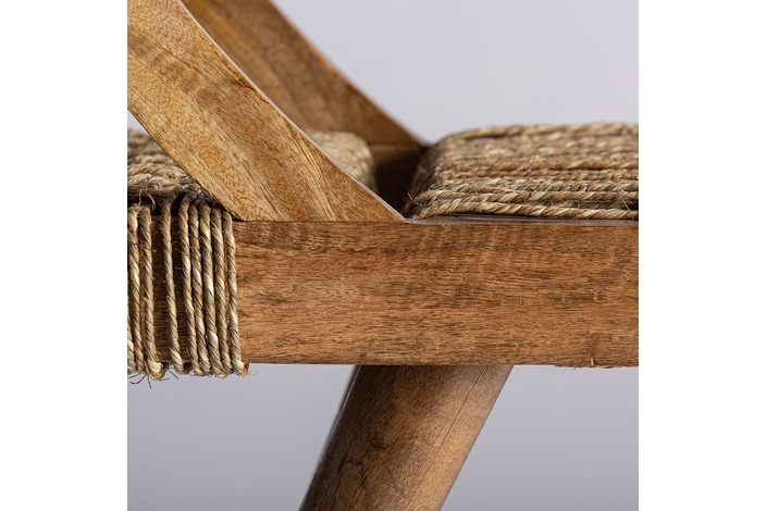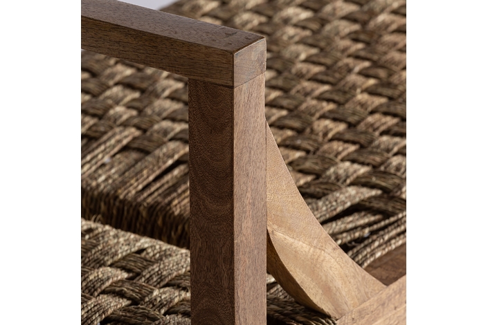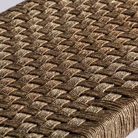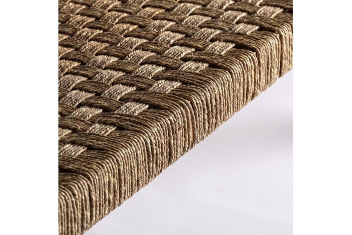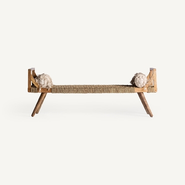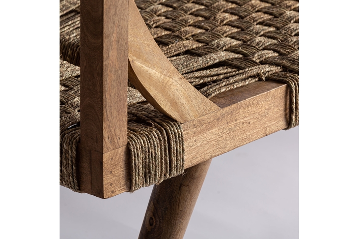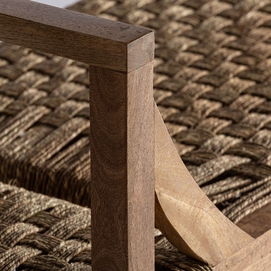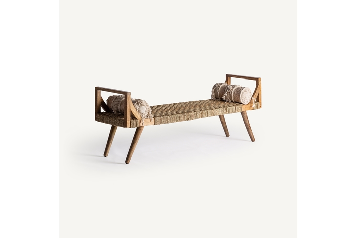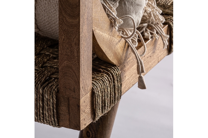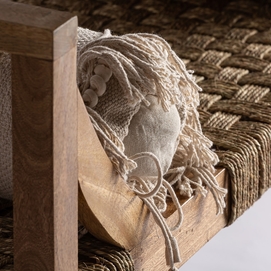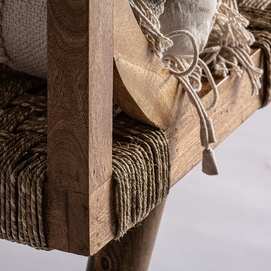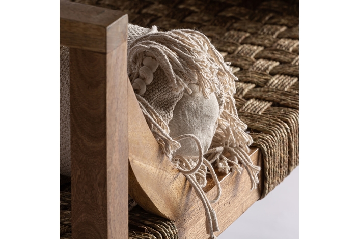 Sofá cama kaaji, en color marrón, de estilo contemporáneo. Fabricado en madera de mango, combinado con fibra natural y algodón. Producto desmontable.