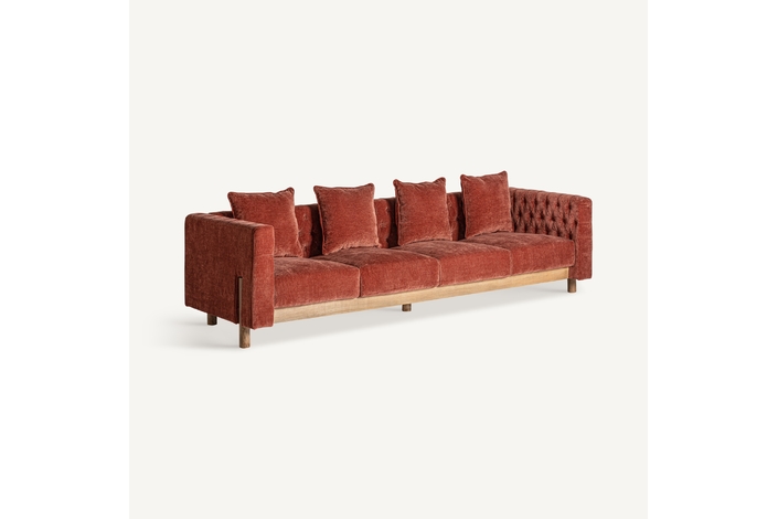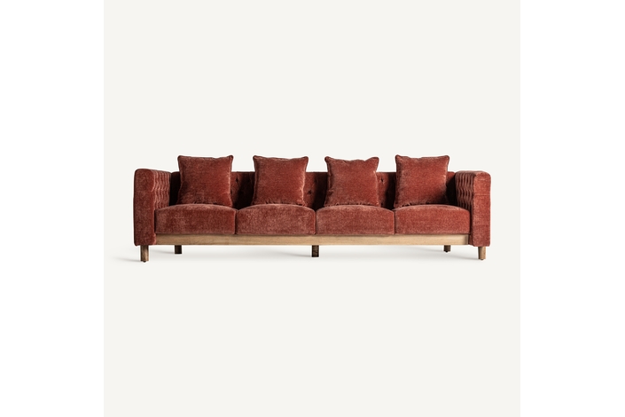 Este Sofá de VICAL es una representación del confort tradicional y la elegancia atemporal. Mide 267cm de largo y 87cm de profundidad, y su diseño de cuatro plazas proporciona un espacio generoso para el descanso. La combinación de madera de pino y roble en su construcción habla de un compromiso con la calidad y la solidez. Aunque el color no está especificado, el diseño y la textura de este sofá sugieren una presencia distintiva que enriquecerá el decorado de cualquier sala de estar. Es una pieza central imprescindible para quienes valoran la comodidad y un diseño clásico y sofisticado.