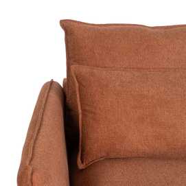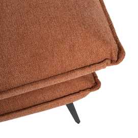 Material: 94% poliéster - 6% nylón. Gramaje: 330gr/m2 Relleno: foam 30kg./m3 Cojines desenfundables con cremallera. Medida cojín grande: 115x51cm. Medida cojín pequeño: 105x38cm. Estructura de madera conglomerada. Patas de hierro. Altura asiento: 46cm. Altura patas: 17.50cm. Profundidad asiento de menor a mayor: 49-67-84-100cm. Altura reposabrazos: 64cm. No desenfundable. Patas para montar.