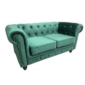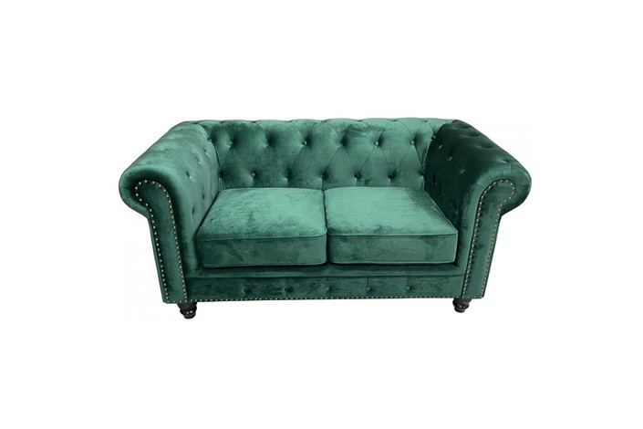 Sofá de diseño, 2 plazas, tapizado en tejido velvet de color esmeralda. Sofá de 3 plazas a juego. Otros colores disponibles.