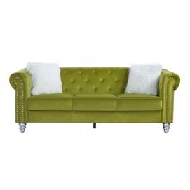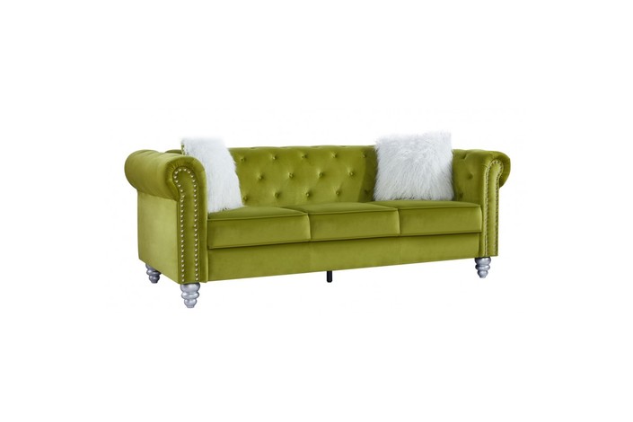 Sofá de diseño, 3 plazas, tapizado en tejido velvet de color verde 38. Sofá de 2 plazas a juego. Otros colores disponibles.