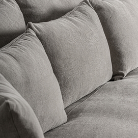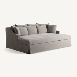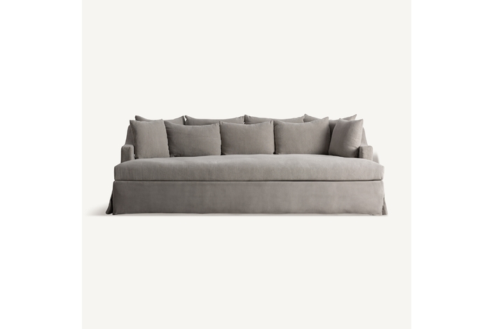Sofá Corbun de estilo clásico, fabricado en lino en color topo, combinado con algodón y espuma. Producto desmontable, desenfundable.