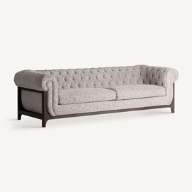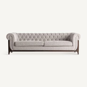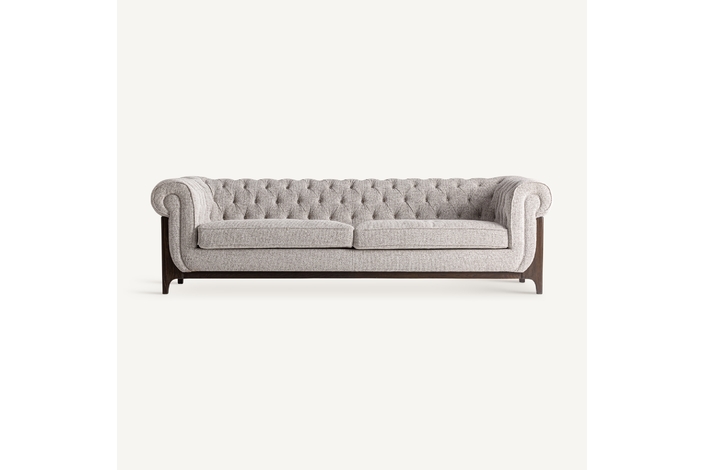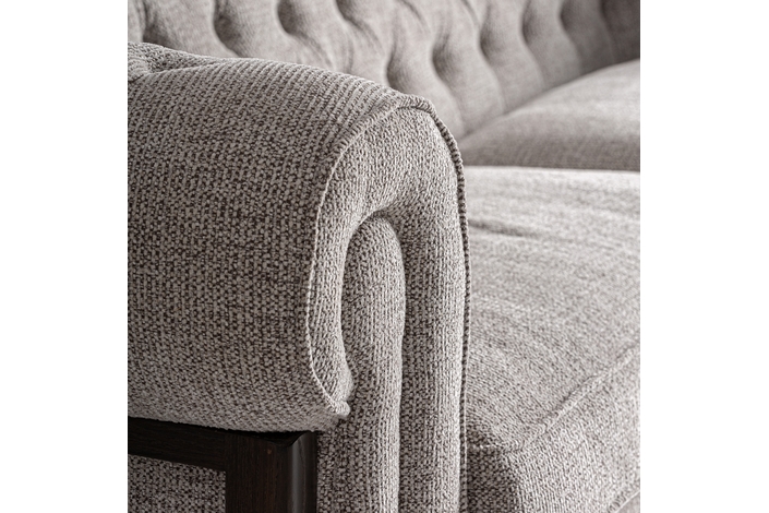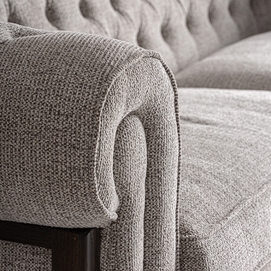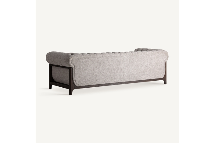 Sofá Ipswich de estilo clásico, fabricado en madera de fresno en color marrón, combinado con poliéster en color gris. Producto desenfundable.