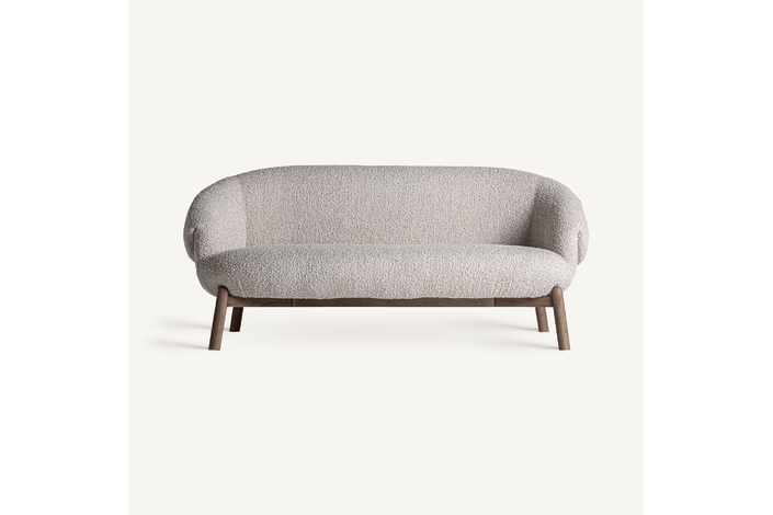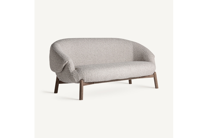 Sofá jacquard, de estilo contemporáneo. Fabricado en madera roble, en color marrón claro, combinado con poliéster, en color beige.