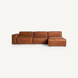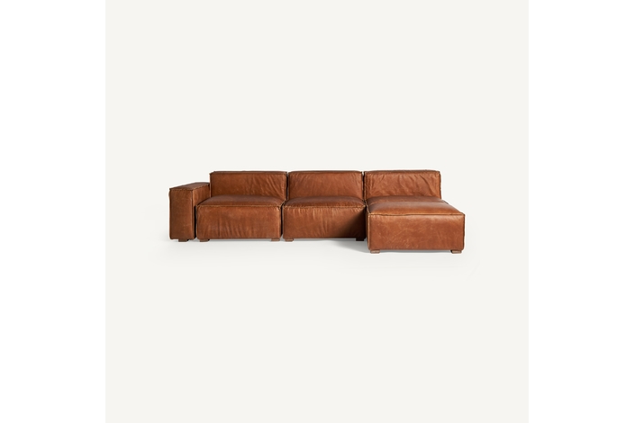 Sofá modular auburn, en color marrón, de estilo vintage. Fabricado en madera abedul, combinado con piel y espuma. Compatible con: 31305,31306.