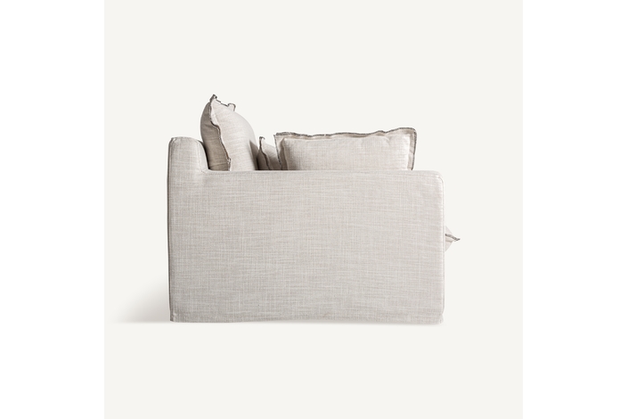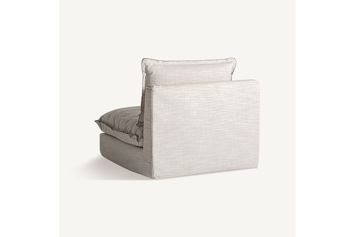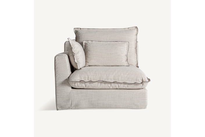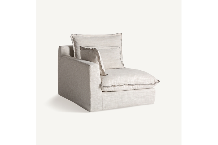 Sofá modular bief, en color blanco roto, de estilo clásico. Fabricado en poliéster, combinado con madera de pino y espuma. Relleno: 65% espuma, 20% fibra, 10% pluma de pato, 5% entretela. Producto desenfundable. Compatible con: 35595,35596,35597.