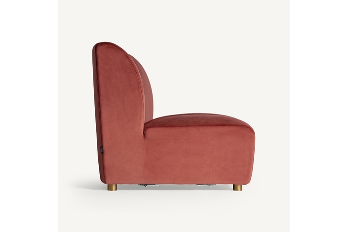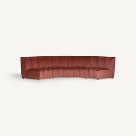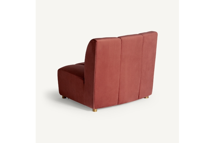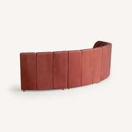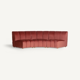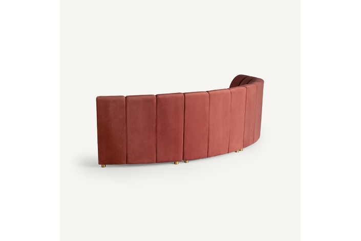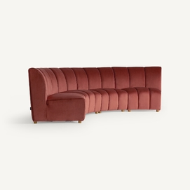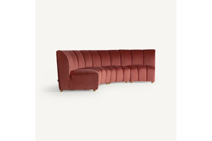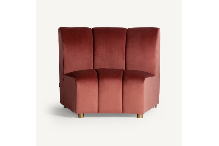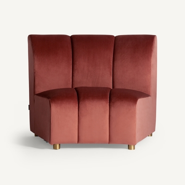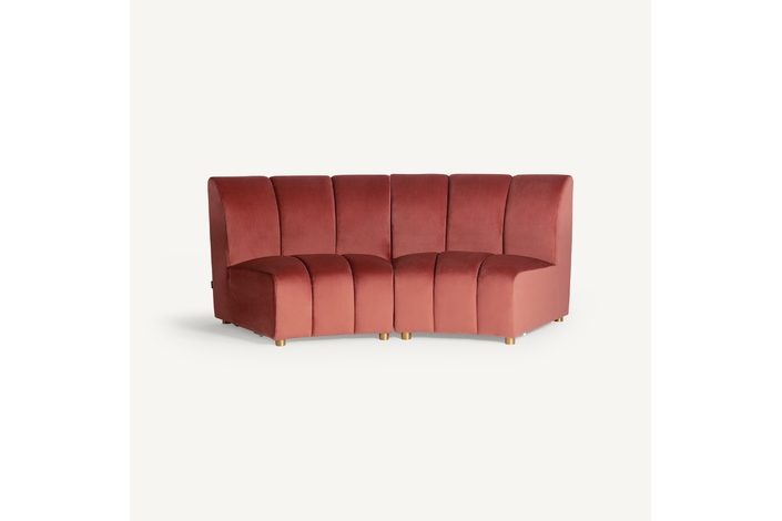 Sofá modular de estilo Art Decó que ofrece versatilidad al espacio sin perder la belleza y el estilo VICAL. Elaborado en terciopelo de un elegante tono coral, el sofá Suhl se ha convertido en una de las piezas más características de la temporada.