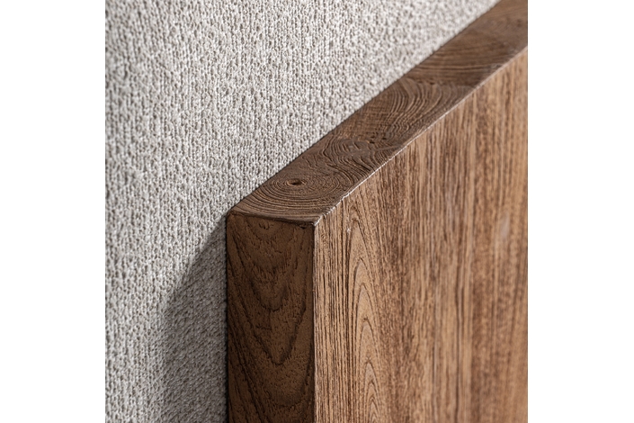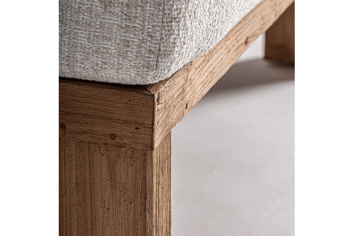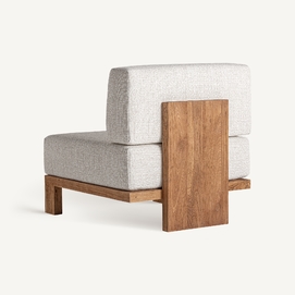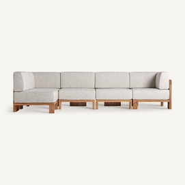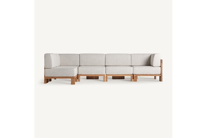 Sofá modular testa, en color marrón/beige natural, de estilo colonial. Fabricado en madera de teka reciclada, combinado con polipropileno reciclado y espuma. Producto desmontable, desenfundable.