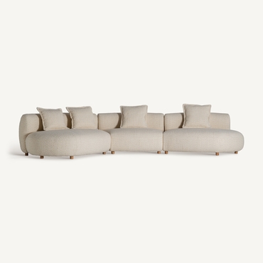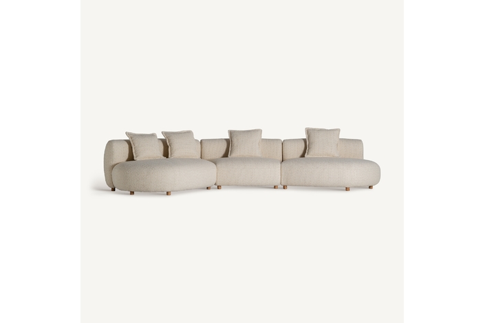 Sofá modular zakupi, de estilo contemporáneo. Fabricado en poliéster, en color beige, combinado con madera de caucho y madera contrachapada.