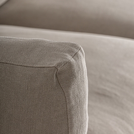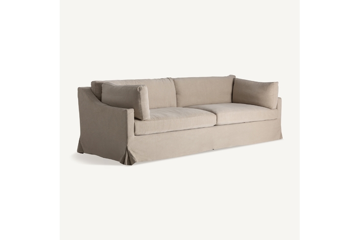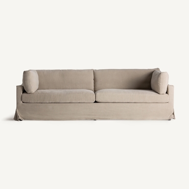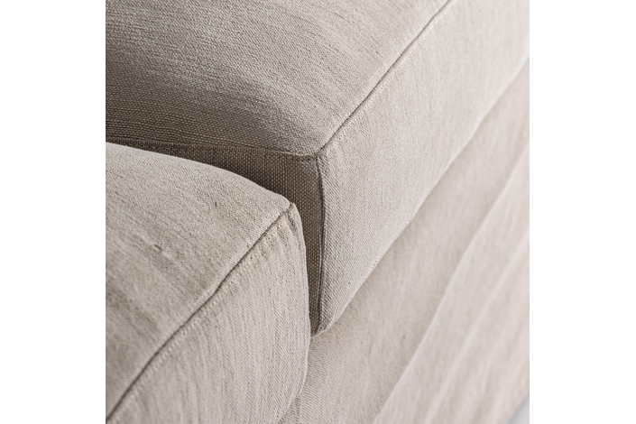 Sofá Monheurt de estilo clásico, fabricado en lino en color beige, combinado con algodón y espuma.