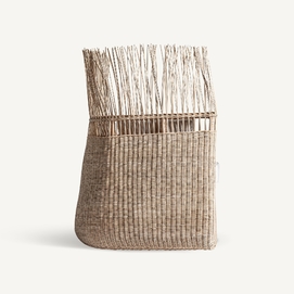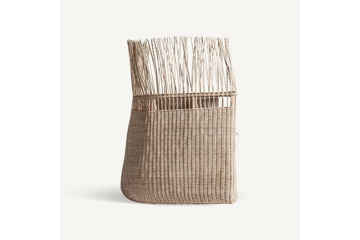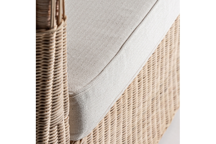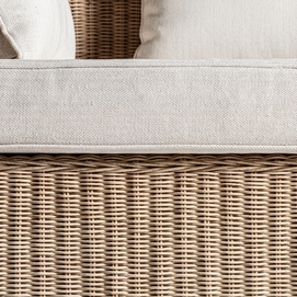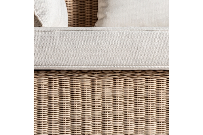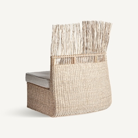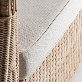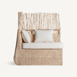 Sofá roche, en color marrón, de estilo étnico. Fabricado en ratán, combinado con algodón.
