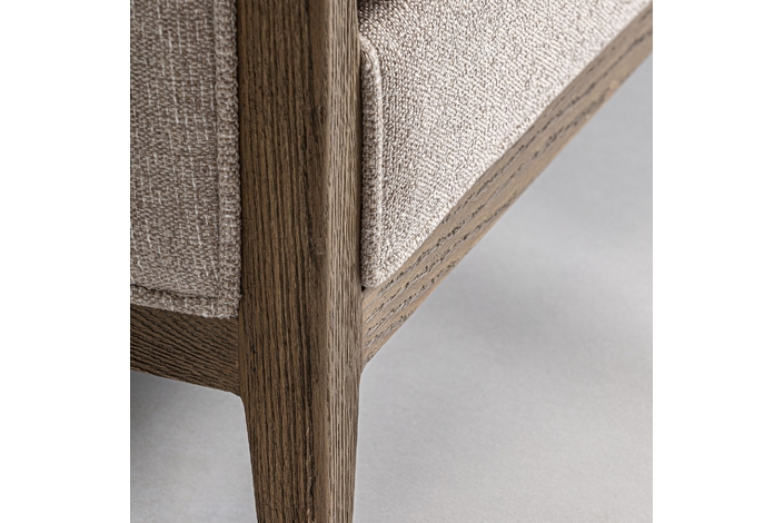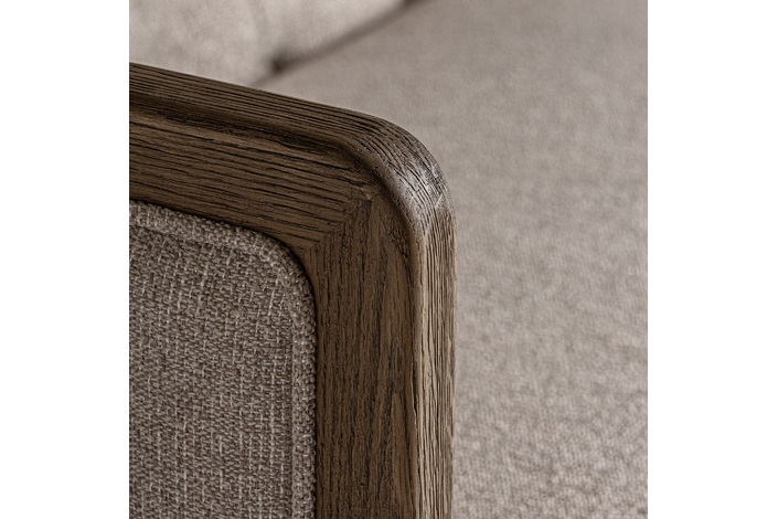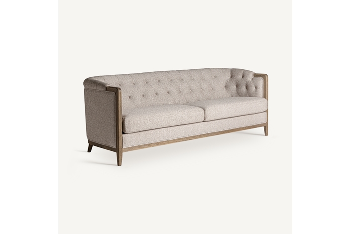 Sofá silz, en color beige, de estilo colonial. Fabricado en madera de fresno, combinado con poliéster. Producto desenfundable.