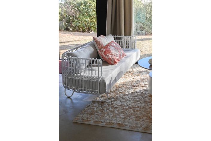 Dimensiones (cm) Longitud 180  |  Fondo 66  |  Altura 66 Material Metal  |  Poliester