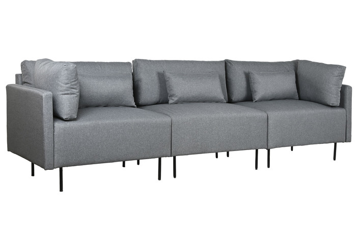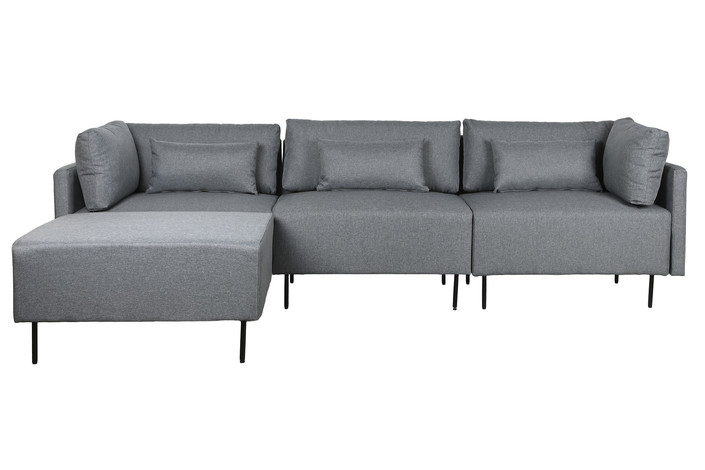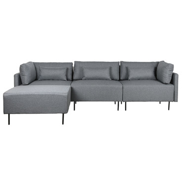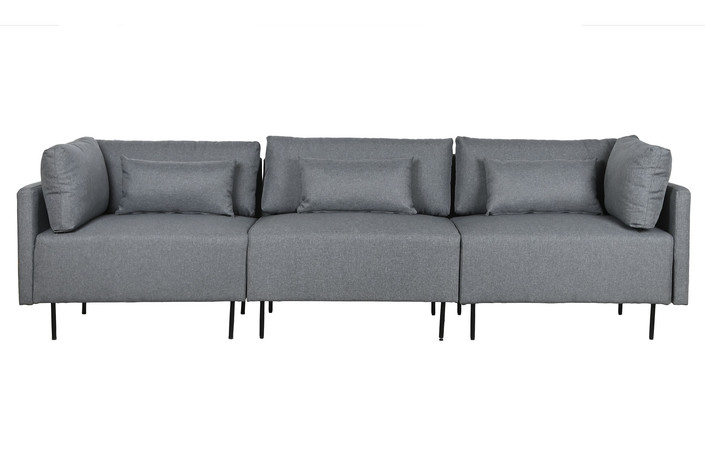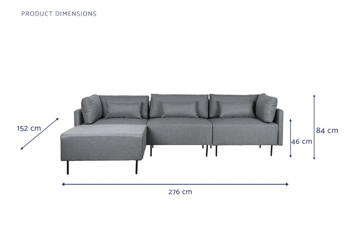 Dimensiones (cm) Longitud 276  |  Fondo 152,5  |  Altura 84 Peso neto producto (kg) 73,00 Material Poliester  |  Metal Descargas Montaje