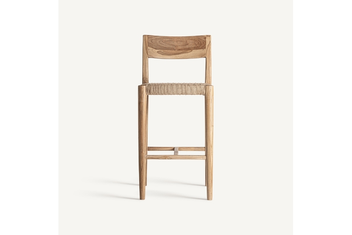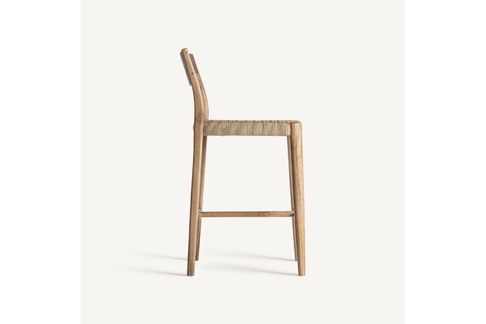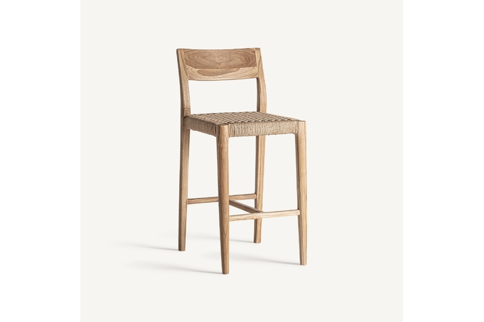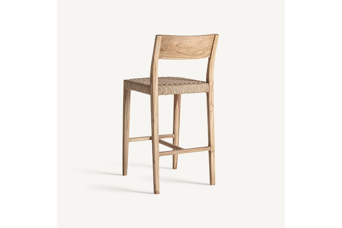 Taburete, fabricado en madera de teka, combinado con fibra natural.