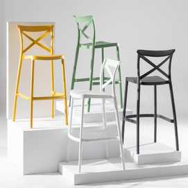 Material: polipropileno. Altura asiento: 75cm. Ancho asiento: 39cm. Profundo asiento: 37cm. Altura respaldo: 37cm. Cumple la normativa EN16139 (catering). Apilable.