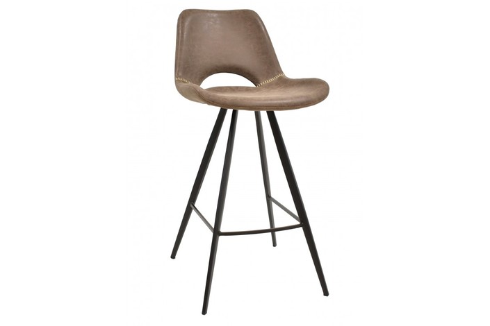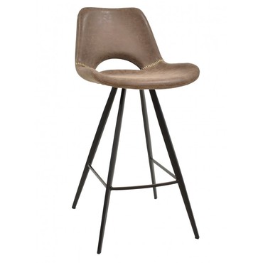Taburete de diseño, armazón metálico pintado en negro, asiento tapizado en similpiel vintage marrón oscuro. Uso en interiores. Otros colores disponibles.