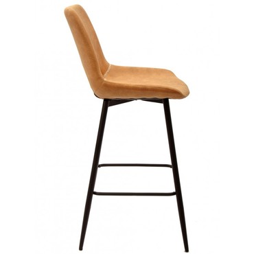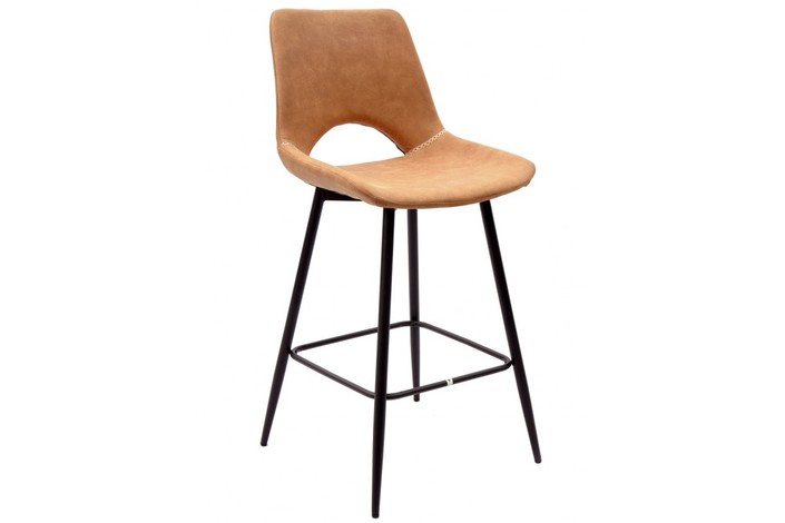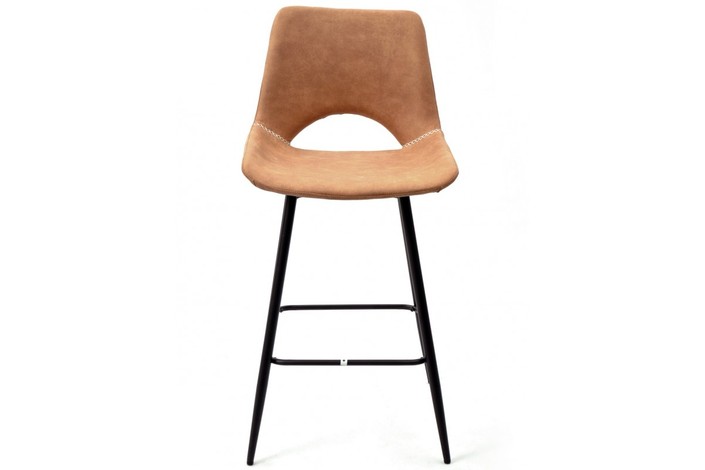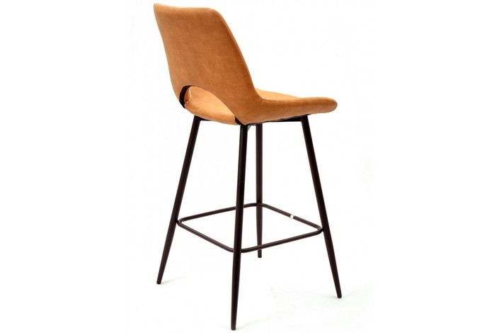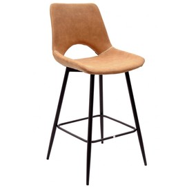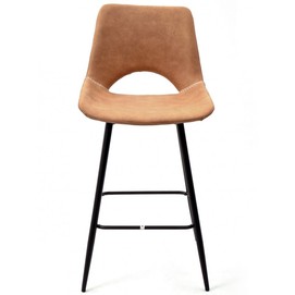 Taburete de diseño, armazón metálico pintado en negro, asiento tapizado en similpiel vintage marrón claro. Uso en interiores. Otros colores disponibles. Silla a juego