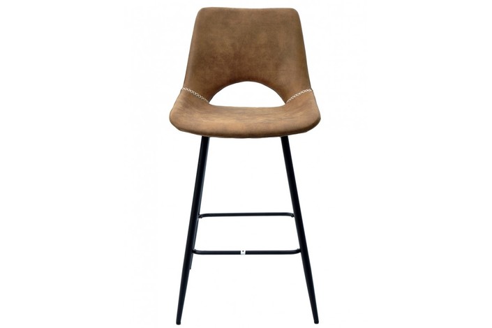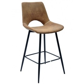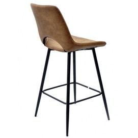 Taburete de diseño, armazón metálico pintado en negro, asiento tapizado en similpiel vintage marrón oscuro. Uso en interiores. Otros colores disponibles. Silla a juego