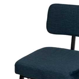 Material patas:Acero. Tejido: 100% poliéster. Altura patas:68.6cm. Altura asiento:77cm. Medidas asiento: 38,5x39,5x6,5 cm Altura respaldo ( desde el asiento):28.5cm Medidas respaldo:35,5x19,5x6 cm Distancia entre patas:48cm Altura travesaño:27,5cm No aplilable. Gramaje:400gr/m2 Relleno:espuma. Peso soportado: 120kgs Cumple con la normativa UNE-EN 16139:2013