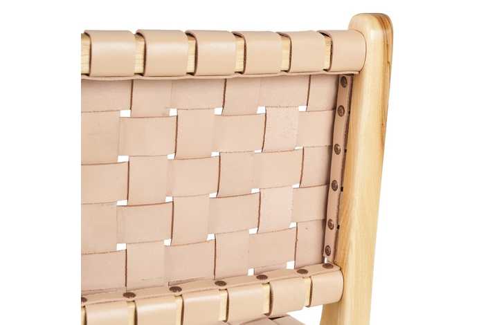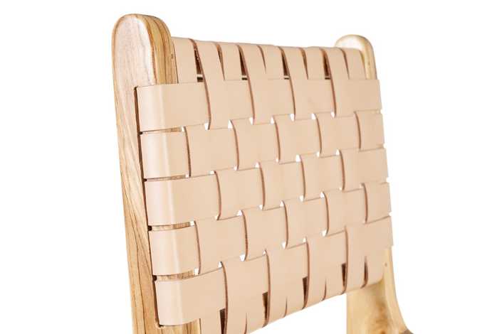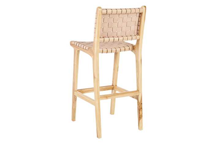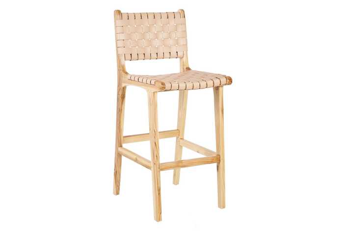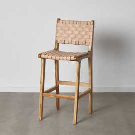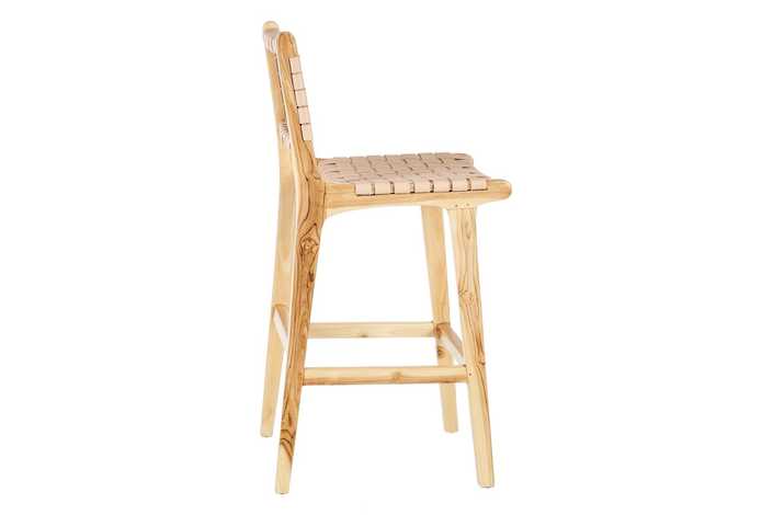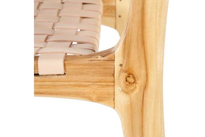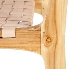 Material: madera de teka - piel. Altura asiento: 61cm. Profundidad asiento: 45cm. Altura respaldo: 35cm.