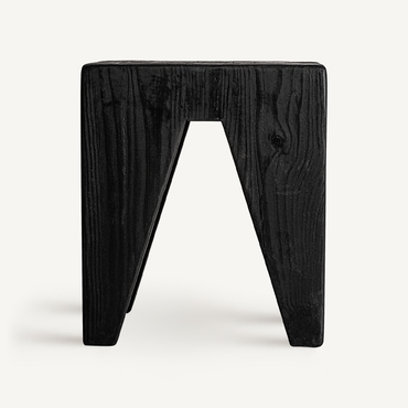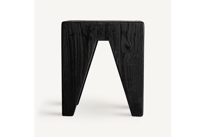 Taburete bruschal, de estilo rústico. Fabricado en madera de pino reciclado, en color negro.