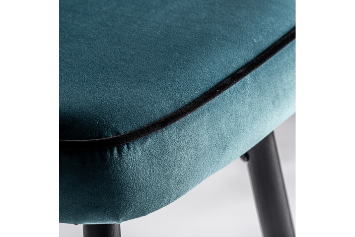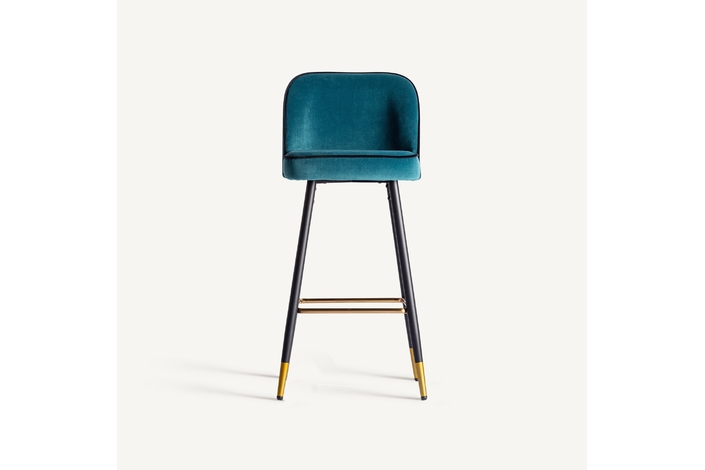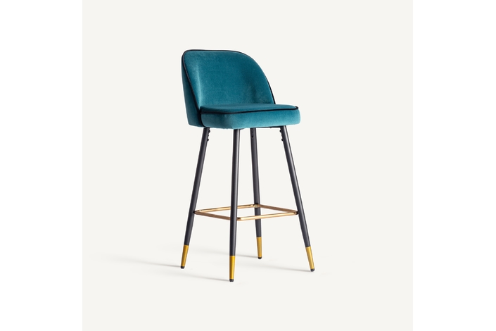 Taburete carpi, en color turquesa, de estilo vintage. Fabricado en terciopelo, combinado con acero y madera dm.