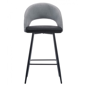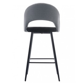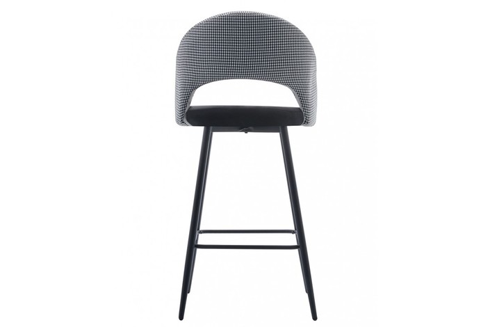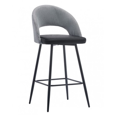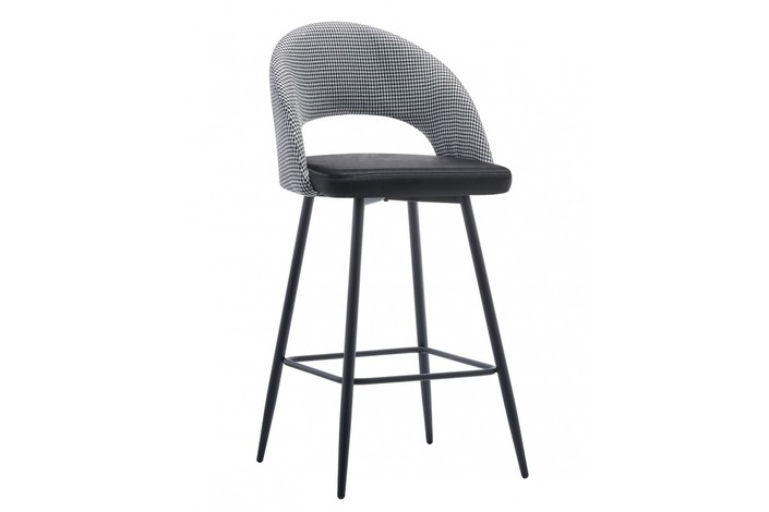 Taburete de diseño, armazón metálico con acabado epoxi negro, respaldo en tejido pata de gallo, asiento tapizado en tejido velvet negro. Uso en interiores. Otros colores disponibles. Silla a juego