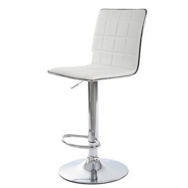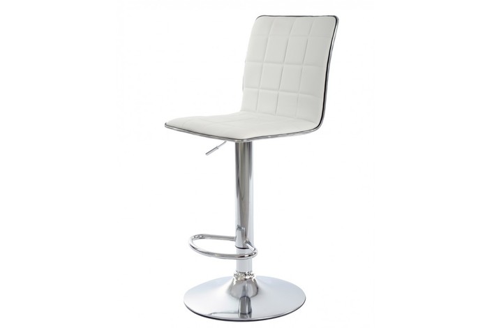 Taburete de diseño, regulable, cromado, tapizado blanco. Otros colores disponibles