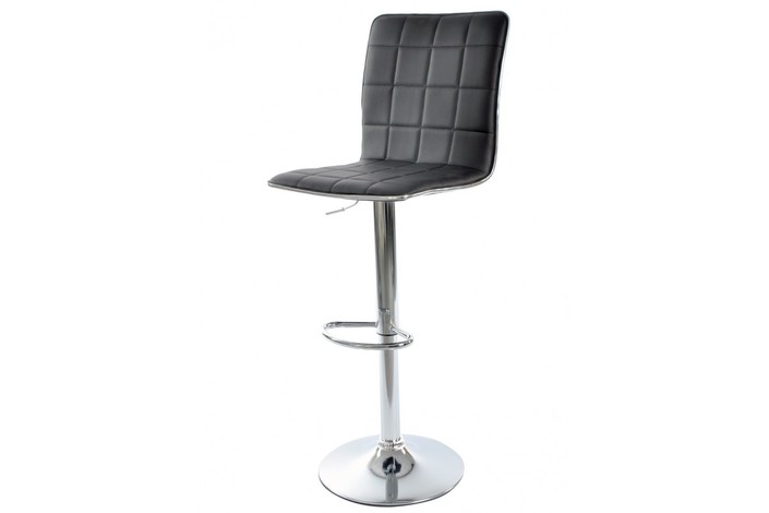 Taburete de diseño, regulable, cromado, tapizado negro. Otros colores disponibles