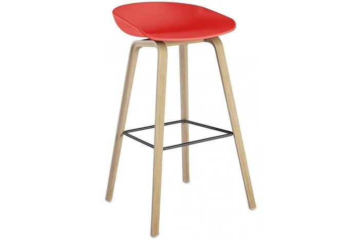 Taburete de diseño, metal, asiento de polipropileno de color rojo