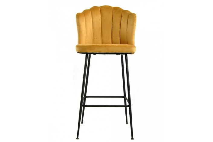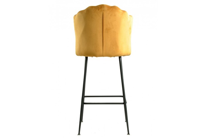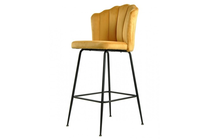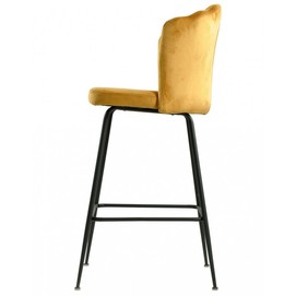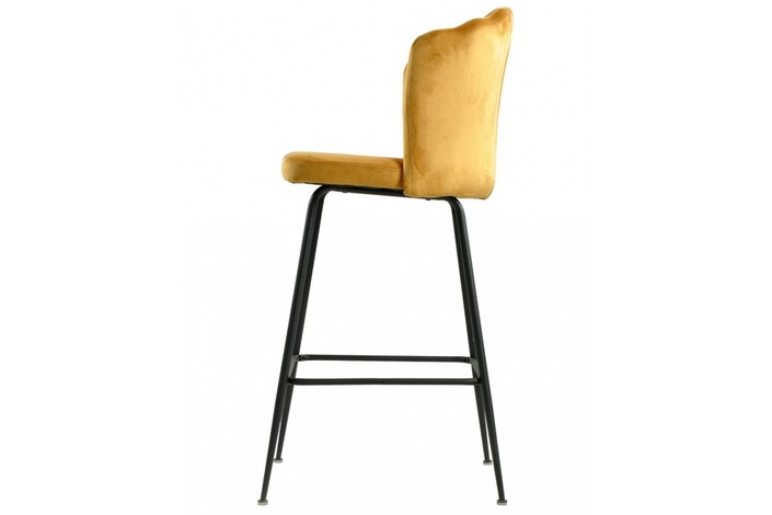 Taburete de diseño, armazón metálico con acabado epoxi negro, asiento tapizado en terciopelo de color amarillo. Uso en interiores. Otros colores disponibles. Sillón a juego