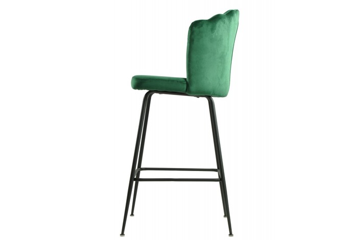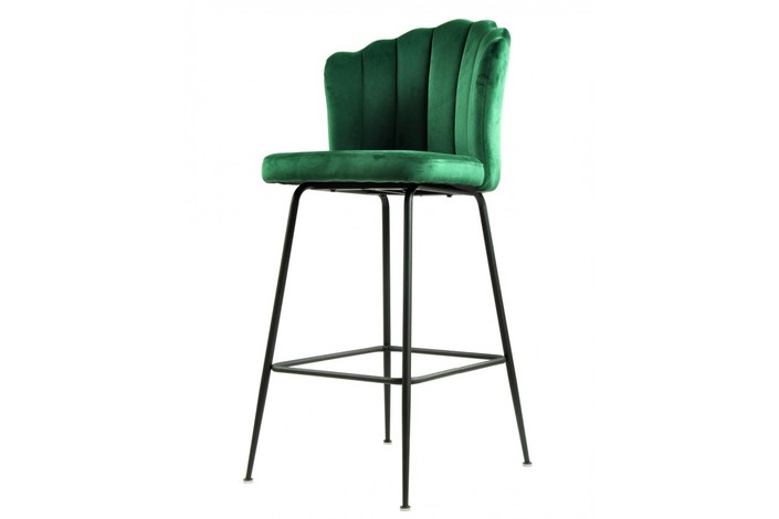 Taburete de diseño, armazón metálico con acabado epoxi negro, asiento tapizado en terciopelo de color verde oscuro. Uso en interiores. Otros colores disponibles. Sillón a juego