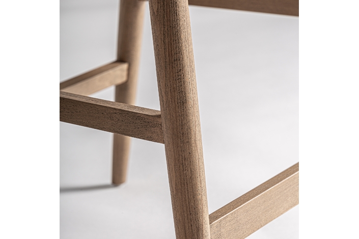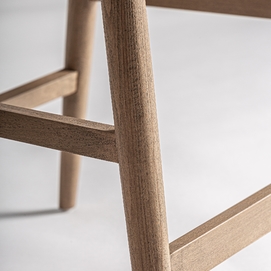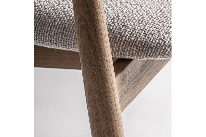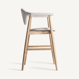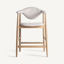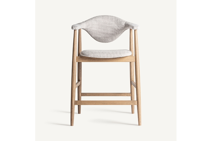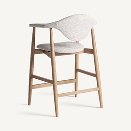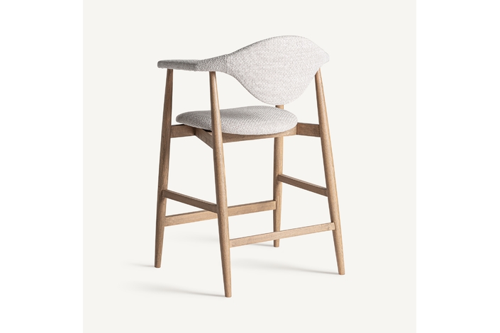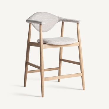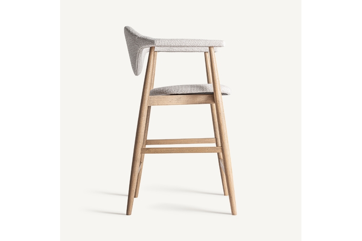 Taburete dilbeek, de estilo contemporáneo. Fabricado en madera de haya, en color marrón claro mate, combinado con espuma y poliéster, en color gris jaspeado.