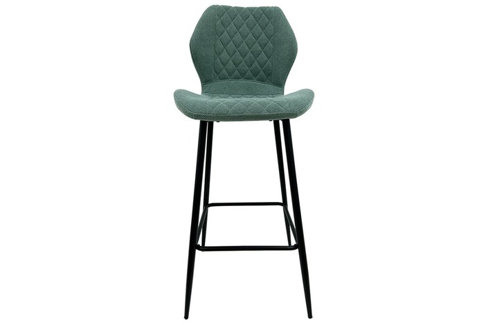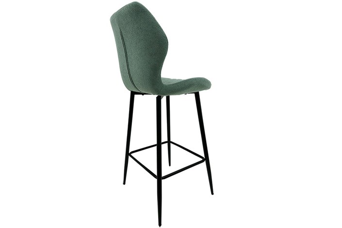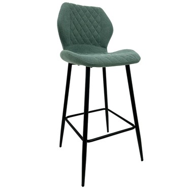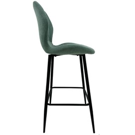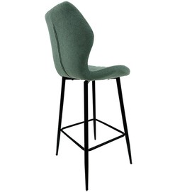 Taburete de diseño, patas metálicas con acabado epoxi negro, asiento y respaldo tapizados en tejido linen verde. Otros colores disponibles. Silla a juego