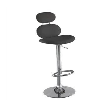 Taburete de diseño, regulable, cromado, tapizado negro.