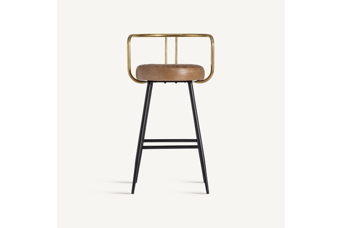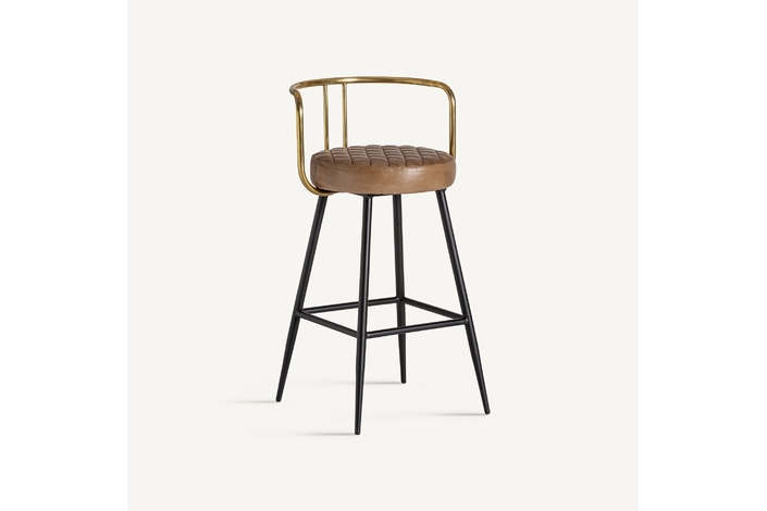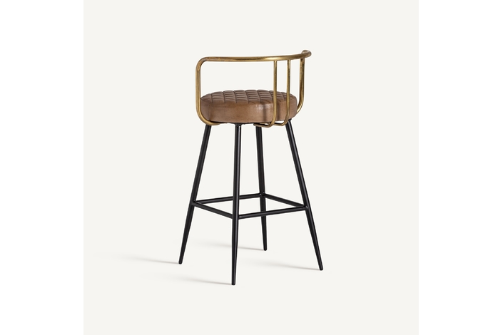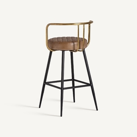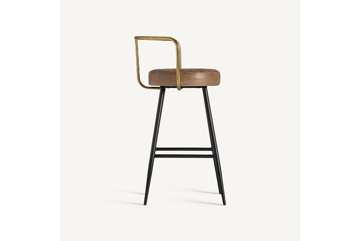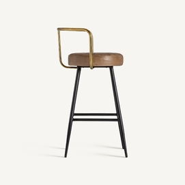 Taburete elkins, en color marrón, de estilo vintage. Fabricado en hierro, combinado con piel. Producto desmontable.