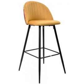 Taburete de diseño, armazón metálico con acabado epoxi negro, asiento y respaldo tapizados en terciopelo amarillol, trasera en tejido decorado floral a juego. Otros colores disponibles. Silla a juego