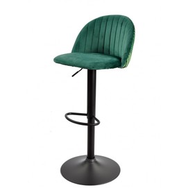 Taburete de diseño, regulable, armazón metálico con acabado epoxi negro, respaldo en tejido velvet verde con trasera floral a juego. Otros colores disponibles.