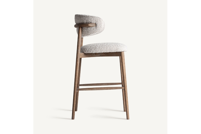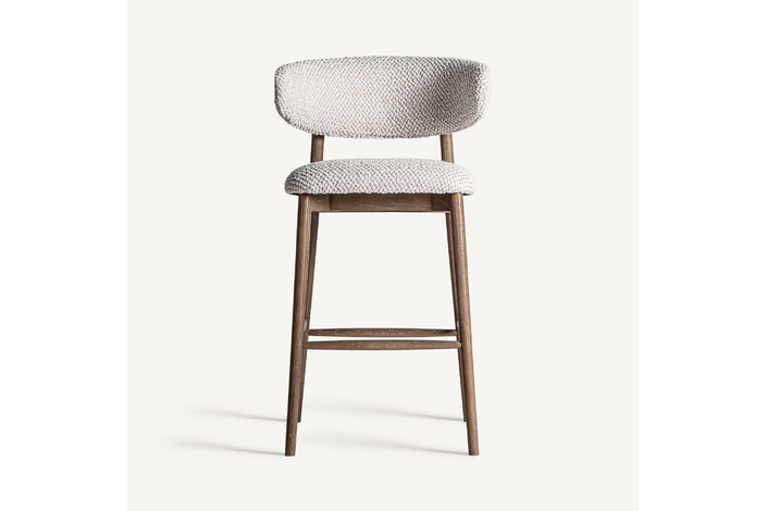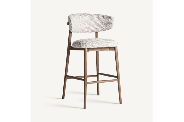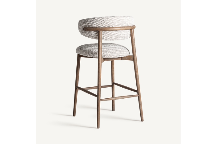 Taburete gerb, de estilo contemporáneo. Fabricado en madera de fresno, en color marrón, combinado con poliéster, en color beige.