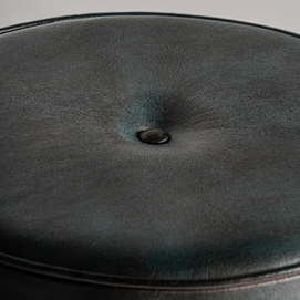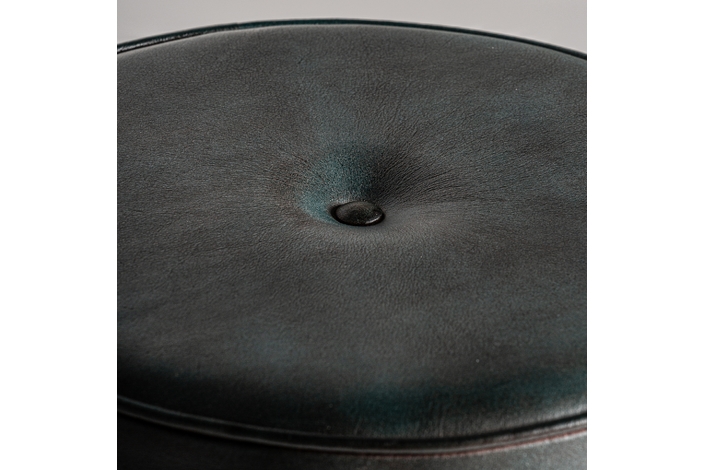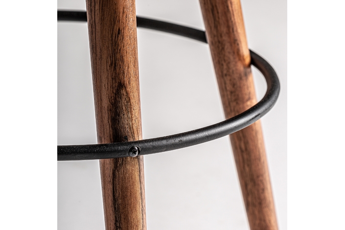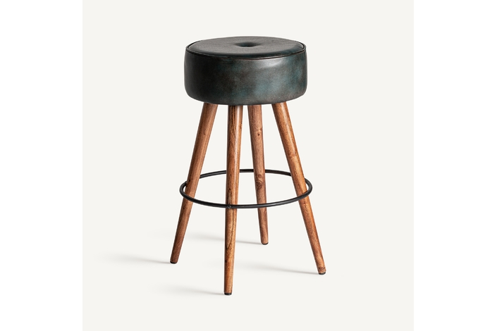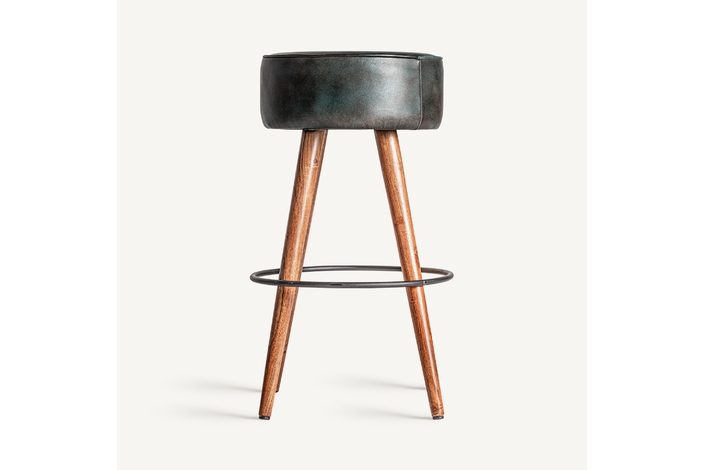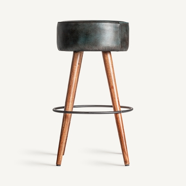 Taburete idre, en color negro/natural, de estilo vintage. Fabricado en madera de acacia, combinado con hierro y piel.