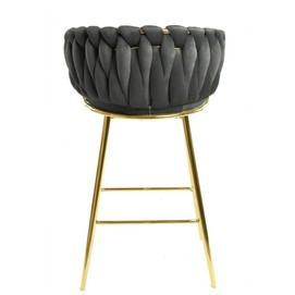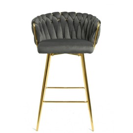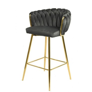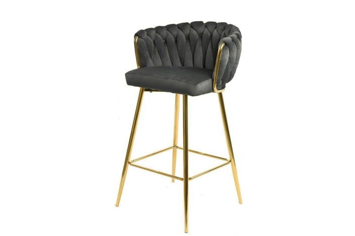 Taburete de diseño, armazón metálico con acabado cromado dorado, asiento tapizado en terciopelo de color gris oscuro. Uso en interiores. Otros colores disponibles. Sillón a juego