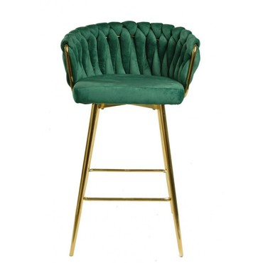 Taburete de diseño, armazón metálico con acabado cromado dorado, asiento tapizado en terciopelo de color verde oscuro. Uso en interiores. Otros colores disponibles. Sillón a juego