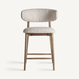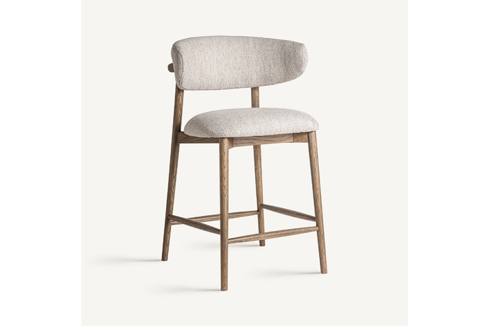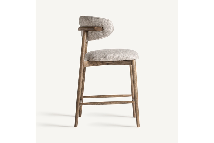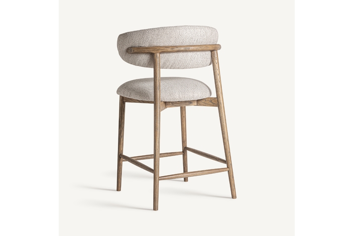 Taburete laires, en color marrón/beige, de estilo colonial. Fabricado en madera de fresno, combinado con poliéster.