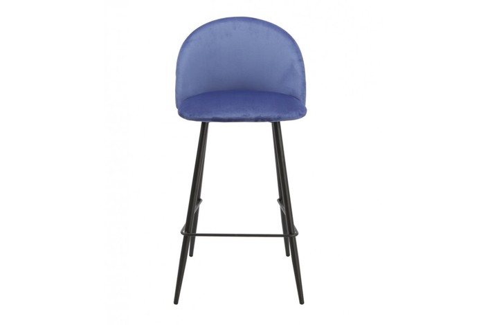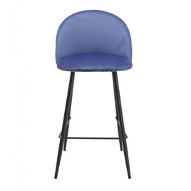 Taburete de diseño, armazón metálico con acabado epoxi negro, asiento tapizado en terciopelo de color azul. Uso en interiores. Otros colores disponibles. Silla a juego