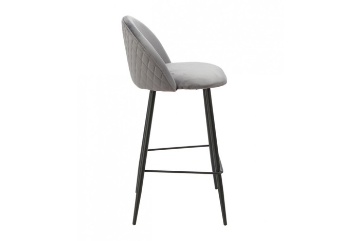Taburete de diseño, armazón metálico con acabado epoxi negro, asiento tapizado en terciopelo de color gris. Uso en interiores. Otros colores disponibles. Silla a juego